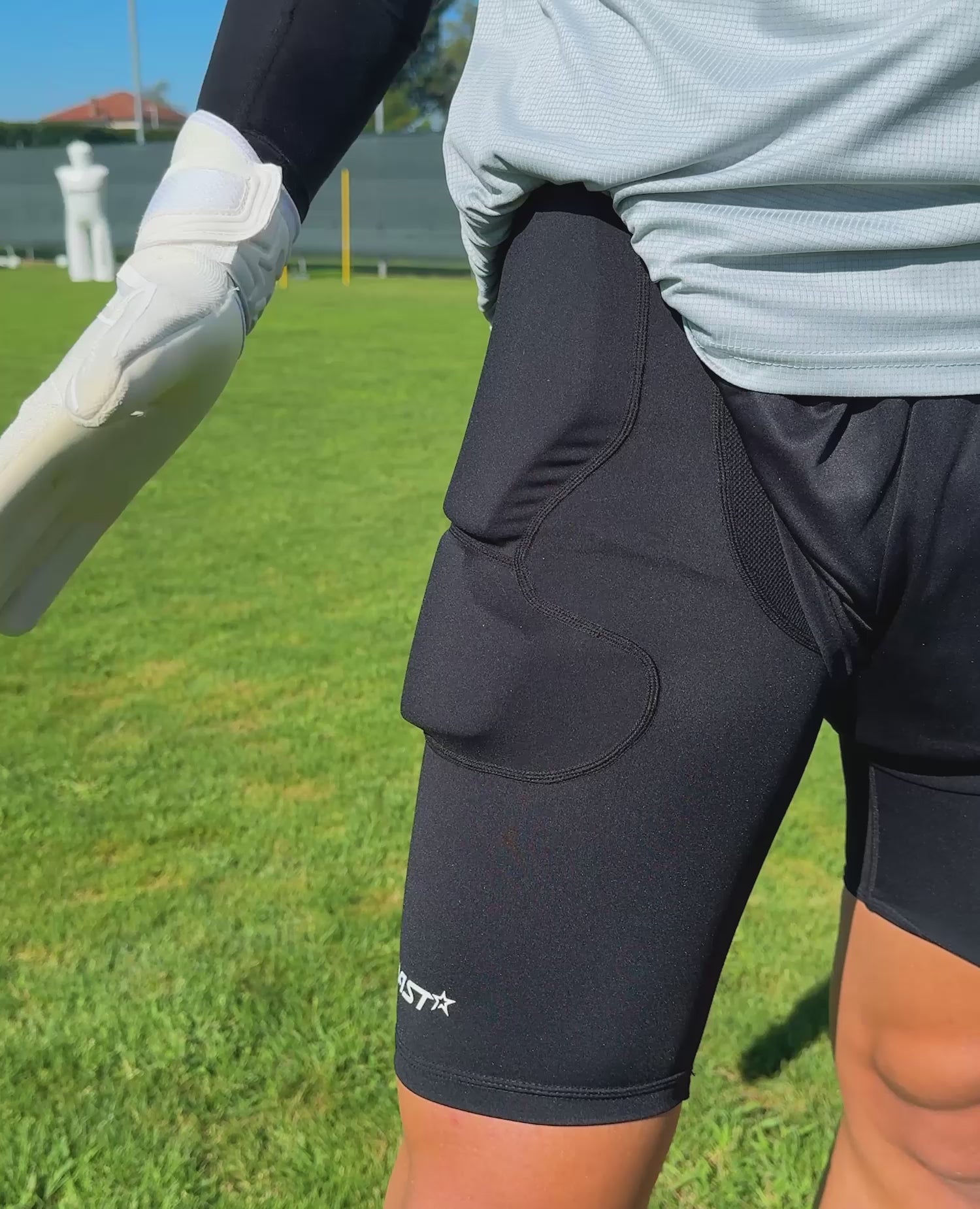 Sottopantaloncini da portiere in lycra antibatterica con protezioni sulle anche in schiuma NBR da 20mm. Comfort assoluto, vestibilità aderente e protezione superiore per allenamento e partita.